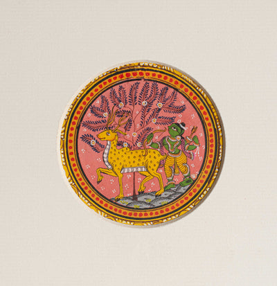 Miniature circular hand paintings from Orissa, depicting divinity, set in a cream coloured mount.